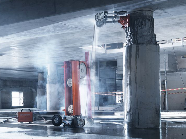 Der Einsatz einer Seilsäge ermöglicht es Schnittiefen von über 90 cm zu erreichen. Im Gegensatz zum konventionellen Sägeverfahren, wird nicht mit einem Sägeblatt, sondern mit einem Diamantsägeseil geschnitten. Um den Schnitt auszuführen, wird das Diamantsägeseil über Umlenkrollen um das abzutrennende Bauteil gelegt und langsam in das zu schneidende Material eingeführt. Das Endlosseil wird hierbei über einen separaten Hydraulikmotor angetrieben. So sind wir in der Lage, sehr große Bauteile, Fundamente oder ungewöhnliche dicke Wände schnell und kostengünstig abzutrennen.